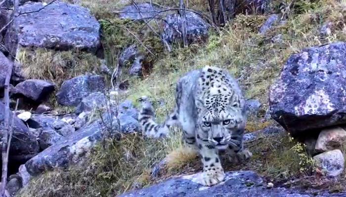 拍攝者稱,發(fā)現(xiàn)雪豹時(shí)其正在啃食獵物,雪豹發(fā)現(xiàn)拍攝者后向其走來,拍攝者迅速將手機(jī)放在一處巖石上逃離。視頻中,雪豹走進(jìn)了拍攝的手機(jī),發(fā)現(xiàn)沒有異常動(dòng)靜后緩慢轉(zhuǎn)身離開。