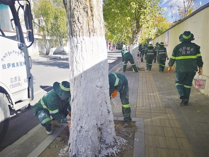西藏拉薩市區(qū)近4萬棵樹木涂白換“冬裝”