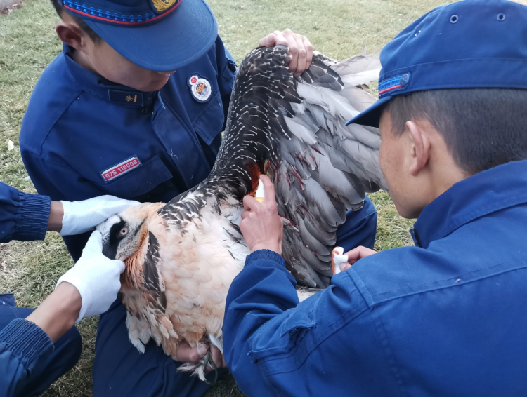情況緊急,中隊(duì)指戰(zhàn)員立即將受傷胡兀鷲帶回中隊(duì),安排衛(wèi)生員對(duì)其翅膀受傷部位進(jìn)行了診斷、清創(chuàng)、消毒、上藥等一系列外傷緊急治療。并對(duì)其進(jìn)行了強(qiáng)制性飲水、喂食,經(jīng)中隊(duì)指戰(zhàn)員的精心照料和治療,胡兀鷲脫離了危險(xiǎn),于11月20日上午與卡若區(qū)林草局野生動(dòng)物救助站交接,讓工作人員將它帶回進(jìn)一步觀察治療,待它健康后放歸大自然。