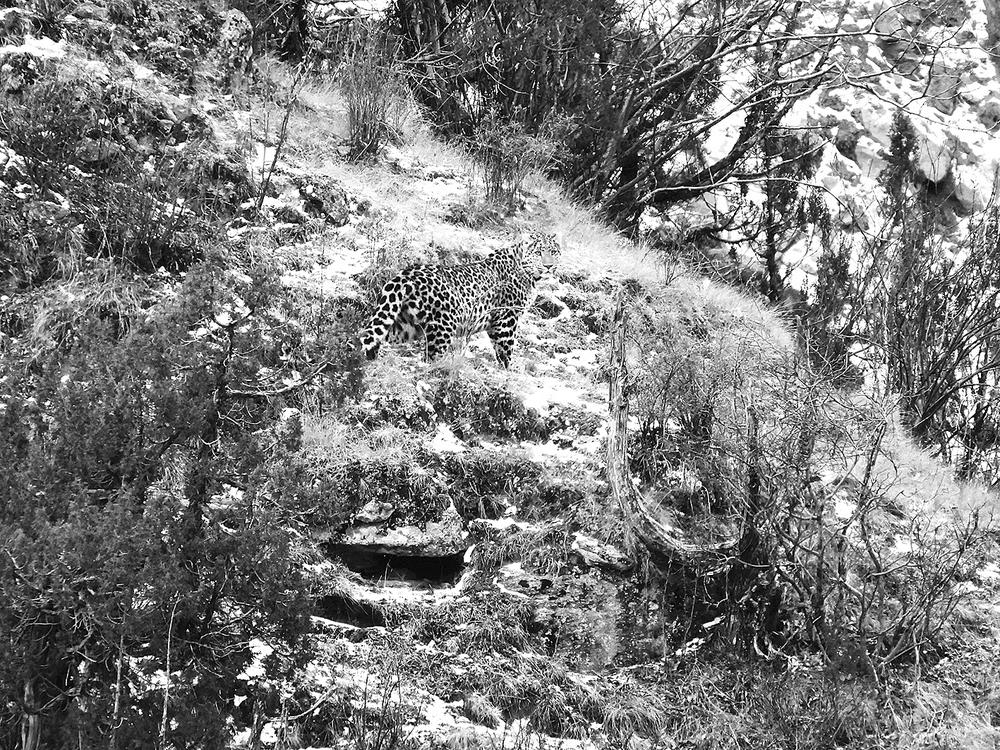 三江源地區(qū)是全球金錢豹種群分布海拔最高的區(qū)域之一,對金錢豹未來保護和科學(xué)研究有重要價值。研究表明,該區(qū)域擁有豐富的頂級食肉動物種群,呈現(xiàn)出完整的生態(tài)系統(tǒng)狀態(tài),具有極為重要的保護價值和地位。其中,分布著10只金錢豹個體和43只雪豹個體,以及棕熊、猞猁、狼、豺等多種大型食肉動物。此前,監(jiān)測到金錢豹帶著幼崽的視頻資料,表明金錢豹是實現(xiàn)本地種群繁衍的物種。