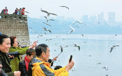 孟冬時節(jié),久違的暖陽普照在瀘州市東門口長江江面上,數(shù)百只紅嘴鷗翩翩起舞,休閑的市民盡情享受著大自然的美,笑語聲、風聲、水聲、鳥聲相互交織,回蕩著自然生態(tài)和諧的旋律。江河清澈,風景優(yōu)美,飛抵瀘州越冬的紅嘴鷗逐年增多,這是瀘州全面推行河長制帶來的成效。