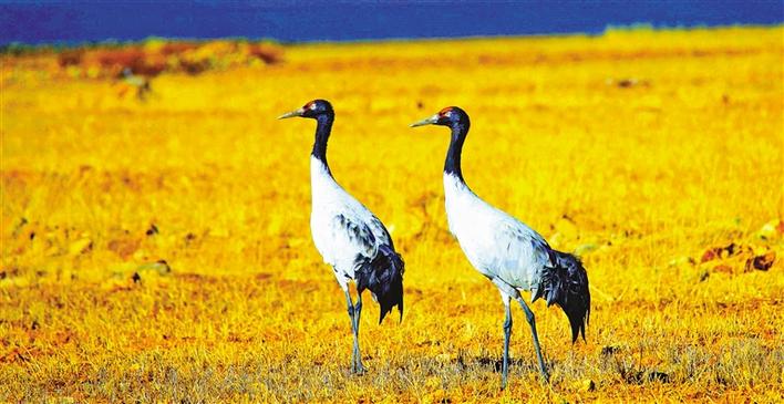 被林周縣當(dāng)?shù)厝罕姺Q為“祥鳥”的紅頭黑頸鶴。