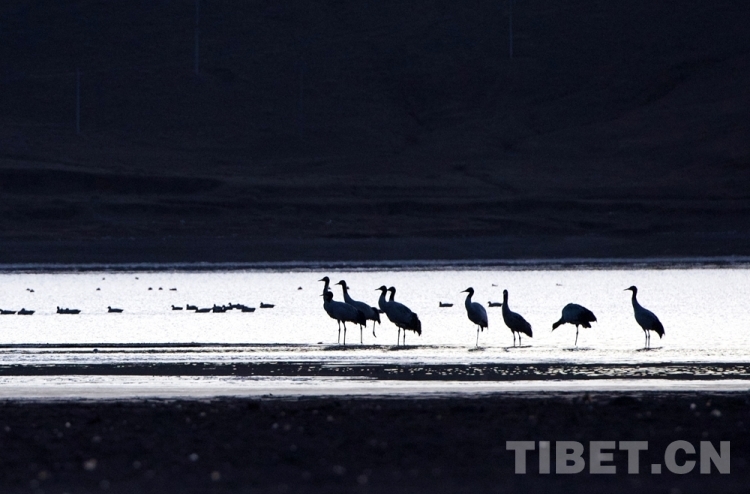 兩面夾山、背風(fēng)向陽(yáng)的虎頭山水庫(kù),是候鳥的主要夜棲地。每年10月中旬開始,國(guó)家一級(jí)野生保護(hù)動(dòng)物黑頸鶴便從逐漸寒冷的藏北草原出發(fā),成群結(jié)隊(duì)地飛越叢山峻嶺遷徙到虎頭山水庫(kù)以及其所處的雅魯藏布江中游河谷地帶越冬。
