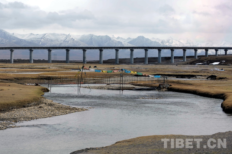 藏北高原,在藏語(yǔ)里稱(chēng)為“羌塘”。這里棲息著的藏羚羊,每年春夏季都會(huì)大規(guī)模由南向北長(zhǎng)距離遷徙,五道梁至楚瑪爾河一帶是必經(jīng)之路。為了保證藏羚羊自由遷徙,青藏鐵路在這里設(shè)立了四處野生動(dòng)物通道。其中長(zhǎng)11.7公里的清水河特大橋和長(zhǎng)4公里的楚瑪爾特大橋,采取“以橋代路”形式設(shè)計(jì)動(dòng)物通道,供野生動(dòng)物通過(guò)。