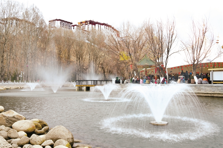 近日,布達拉宮廣場管理處在宗角祿康公園兩處觀景湖內新增的16個噴泉已對外開放。記者在宗角祿康公園內看到,許多市民游客在湖邊散步、拍照、駐足欣賞噴泉,享受著公園內舒適的環(huán)境。