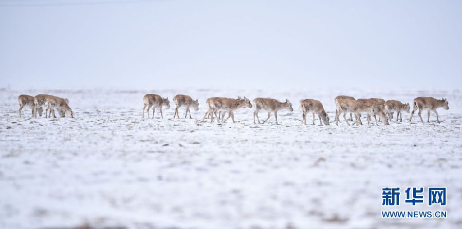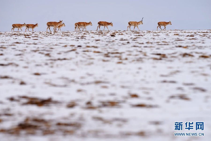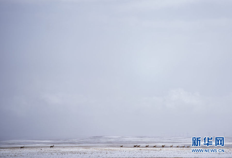 近日,可可西里迎來(lái)降雪,大量藏羚羊匯聚在可可西里五道梁地區(qū),踏上遷徙之路。