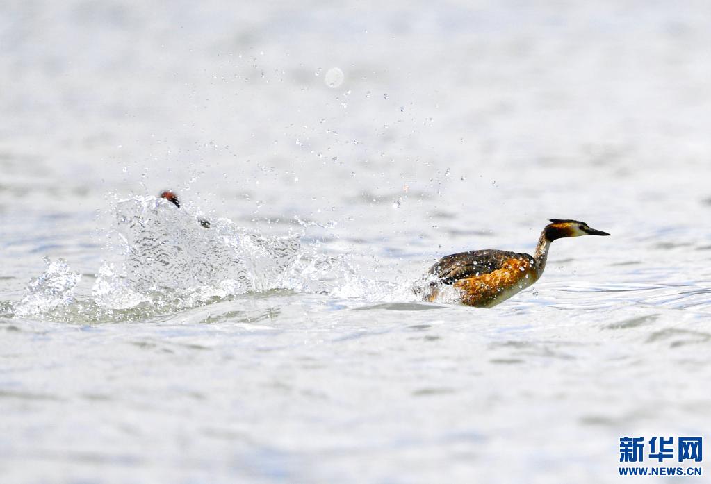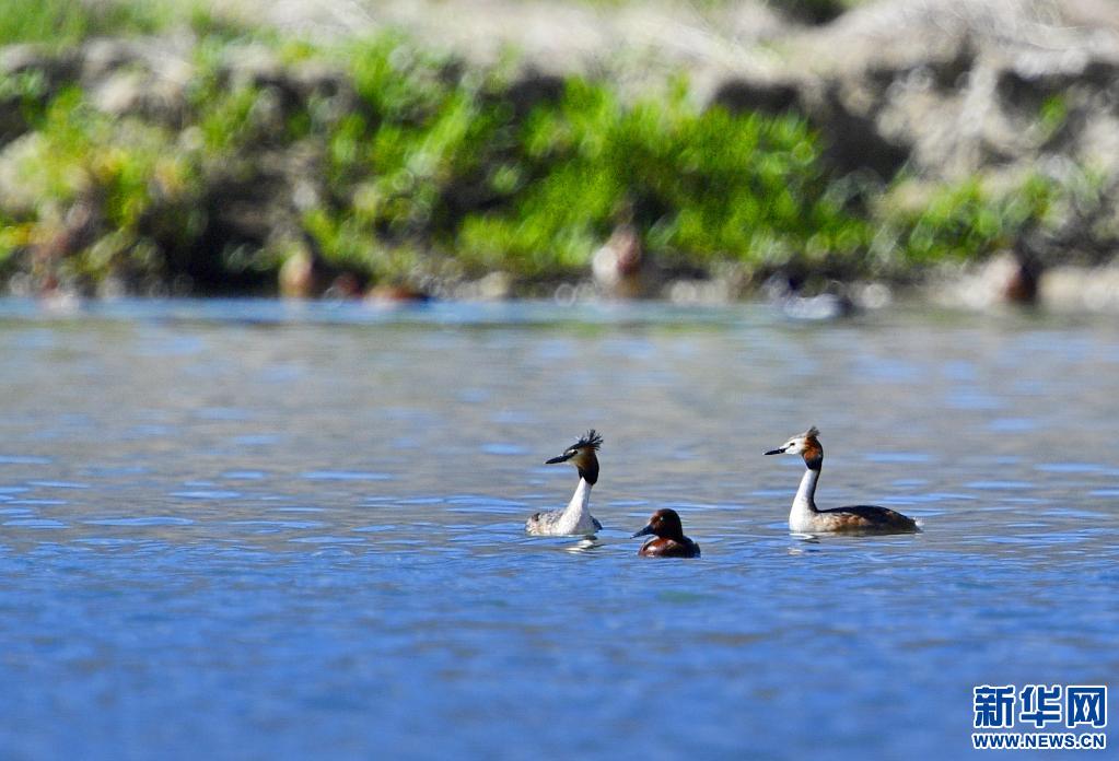 夏日里,鳳頭??和小??在西藏拉薩拉魯濕地國家級自然保護(hù)區(qū)水面上嬉戲。