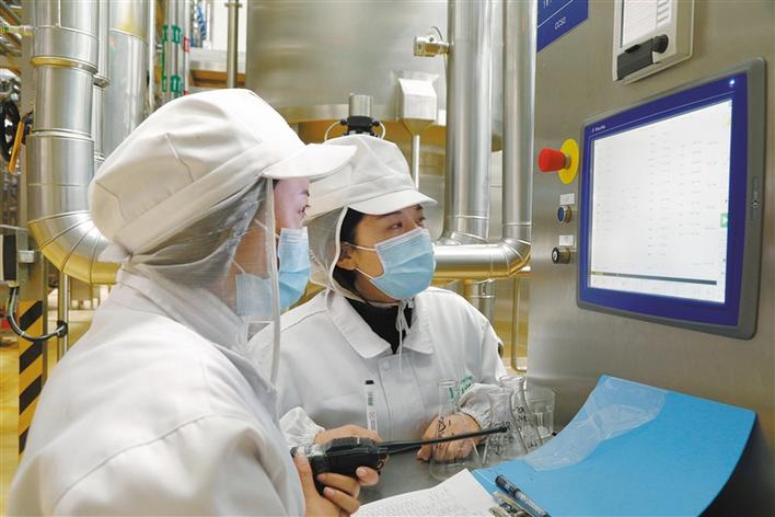 圖為技術(shù)人員對(duì)原奶進(jìn)行巴氏殺菌。 記者 鹿麗娟 攝