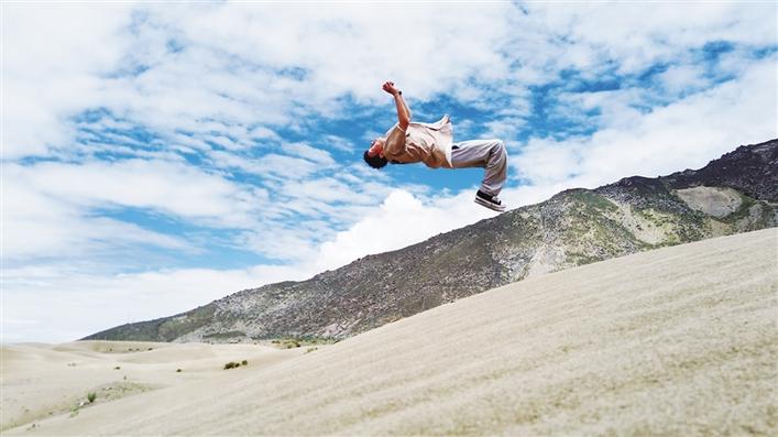 7月29日,記者從拉薩市驅(qū)車近100公里,來(lái)到位于山南市扎囊縣扎若村的沙漠公園,沙丘藝術(shù)公園幾個(gè)大字赫然映入眼簾。進(jìn)入景區(qū),沙海起伏連綿,掀起金色波浪。因?yàn)榍耙蝗談傁逻^(guò)雨,地勢(shì)降低的地段里面積了一些水,在金黃的沙漠上,形成了大大小小的水坑,清澈見(jiàn)底,倒映著藍(lán)天白云,點(diǎn)綴了整片沙海。