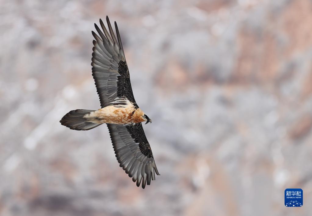 這是在四川省阿壩藏族羌族自治州若爾蓋縣境內(nèi)拍攝的胡兀鷲(2020年11月17日攝)。新華社 王冀川 攝