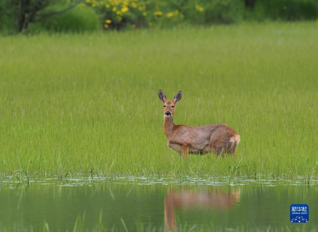 這是在四川省阿壩藏族羌族自治州紅原縣境內(nèi)拍攝的馬鹿(2021年7月1日攝)。新華社 王冀川 攝