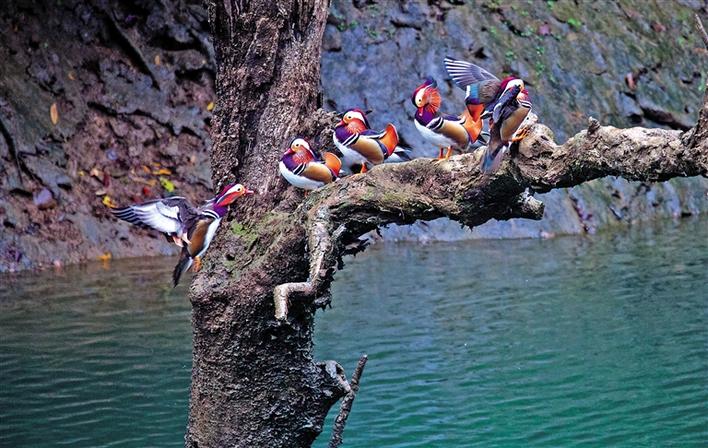 這是在湖南省邵陽市城步苗族自治縣境內(nèi)的南山國(guó)家公園體制試點(diǎn)區(qū)拍攝的鴛鴦(2018年10月16日攝)。新華社發(fā) (湖南南山國(guó)家公園管理局供圖)
