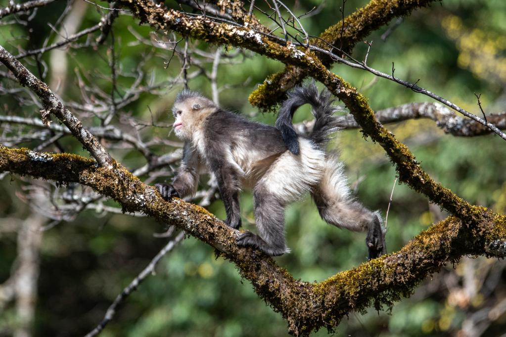 滇金絲猴分布在我國(guó)喜馬拉雅山南緣橫斷山系的云嶺山脈,金沙江、瀾滄江之間面積約2萬(wàn)平方公里的區(qū)域內(nèi)。這些“雪山精靈”長(zhǎng)年生活在人跡罕至的高山地帶,堪稱(chēng)世界上除人類(lèi)以外棲息海拔最高的靈長(zhǎng)類(lèi)動(dòng)物。