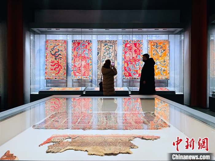 圖為使節(jié)們?cè)谖鲗幨惺忻裰行膮⒂^合影。 中新社記者 孫睿 攝