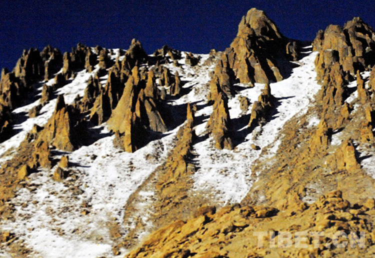 圖為文部辦事處(現(xiàn)尼瑪縣)被當?shù)啬撩袢罕姺Q為“一百個騎兵”的石林山(唐召明1987年攝)
