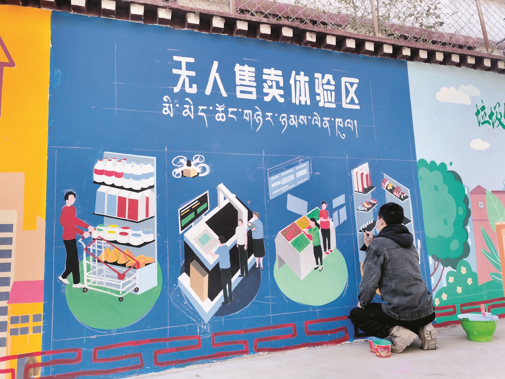 近日,記者在繞賽社區(qū)哈達(dá)巷里看到,有三名工作人員正在給西墻進(jìn)行繪畫藝術(shù)創(chuàng)作,整體的墻繪已經(jīng)基本形成,正對一些細(xì)節(jié)進(jìn)行補(bǔ)充,引來不少過往群眾圍觀拍照。[詳細(xì)] -