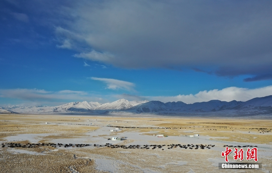1月27日,當(dāng)雄縣龍仁鄉(xiāng)烏達(dá)村牧民趕著牛羊去牧場。當(dāng)雄縣位于西藏自治區(qū)拉薩市北部,距拉薩市區(qū)170公里。“當(dāng)雄”,藏語意為“天選牧場”,平均海拔約4200米,草場廣闊,土地肥沃。(無人機(jī)照片) 中新社記者 貢嘎來松 攝