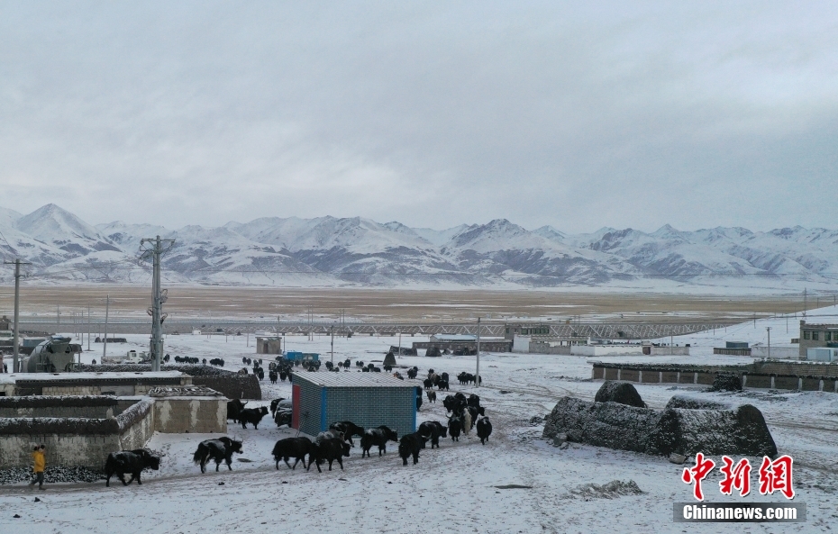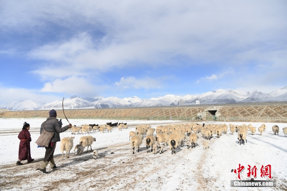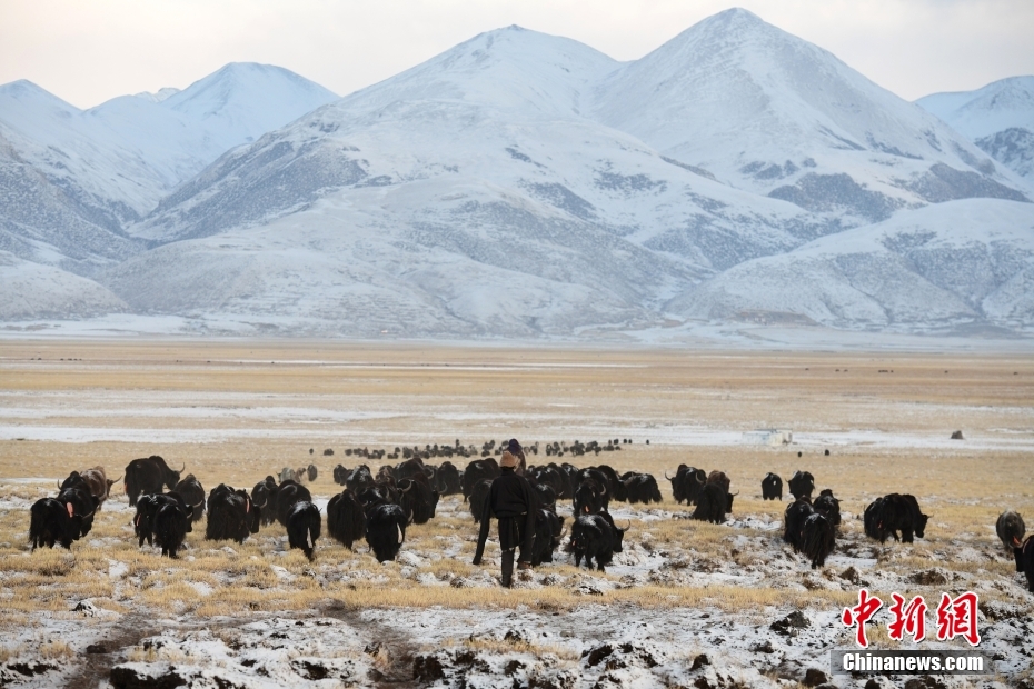 1月27日,當(dāng)雄縣龍仁鄉(xiāng)烏達(dá)村牧民在雪中放牧。當(dāng)雄縣位于西藏自治區(qū)拉薩市北部,距拉薩市區(qū)170公里。“當(dāng)雄”,藏語意為“天選牧場”,平均海拔約4200米,草場廣闊,土地肥沃。 中新社記者 貢嘎來松 攝