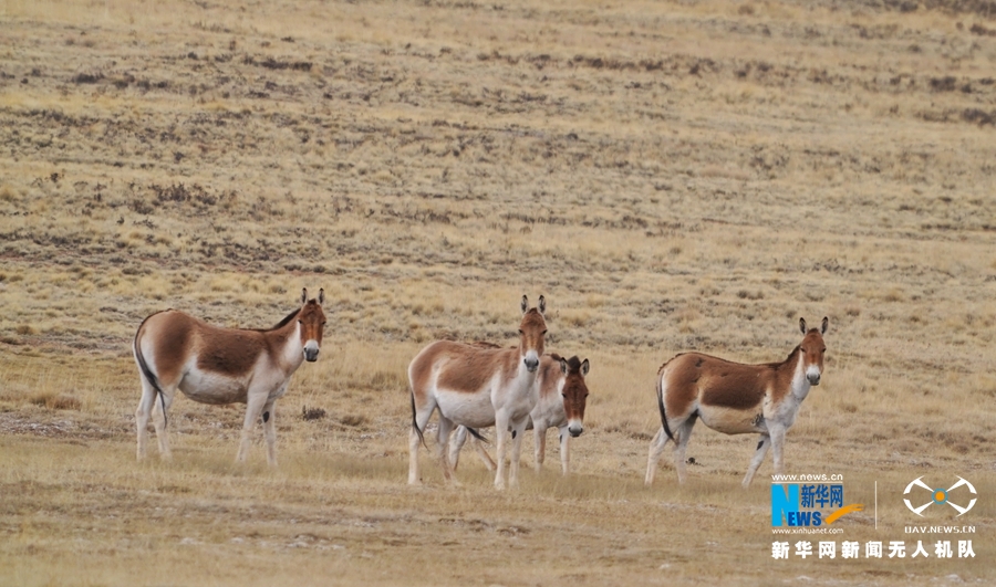 這是近日在甘肅省張掖市肅南裕固族自治縣祁豐藏族鄉(xiāng)禁牧區(qū)拍攝到的大種群藏野驢。新華網(wǎng)發(fā) 武雪峰 攝 飛手 安維斌