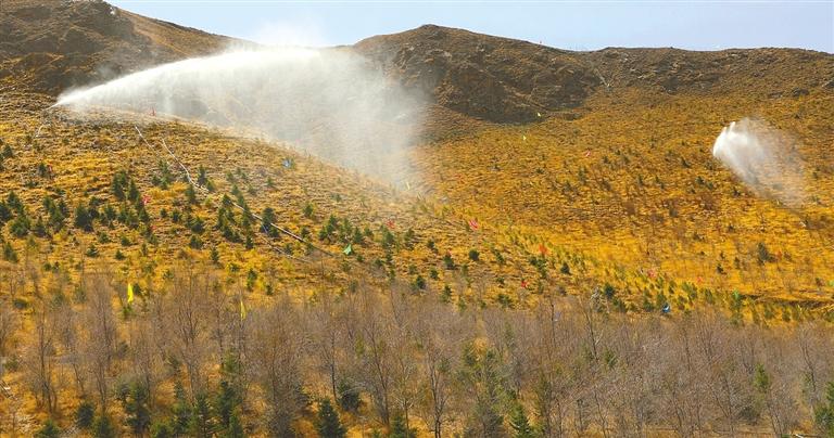 圖為拉薩南北山綠化工程的自動智能澆水系統(tǒng)在給寶瓶山樹林澆水。 記者 格桑倫珠 實(shí)習(xí)生 達(dá)娃宗巴 攝