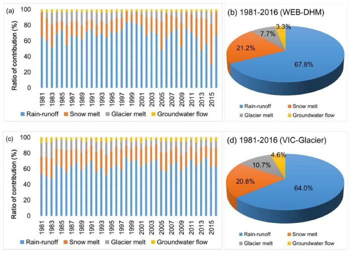 王磊表示,依托監(jiān)測網(wǎng)絡(luò)和其他多源數(shù)據(jù),研究團隊生成了1981-2019年這38年內(nèi)雅魯藏布江流域高時空分辨率降水?dāng)?shù)據(jù),在此基礎(chǔ)上進一步通過對比、綜合主流冰凍圈水文模型的徑流組分模擬,研究得出的結(jié)果顯示,雅魯藏布江流域(奴下水文站以上)新的降雨、融雪、冰川融化和地下水補給分別占總徑流的66%、21%、9%和4%。