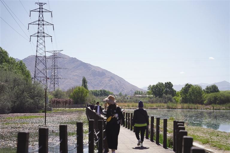 5月初,拉魯濕地里的花草樹(shù)木從春天的泛綠到初夏的翠綠,成為了拉魯濕地的一番美景。市民和游客步行其間,呼吸著充足的氧氣,邁著輕快而有力的步伐,沿著拉魯濕地步道前行,時(shí)而駐足觀(guān)望沿途美景,時(shí)而聚集一方合影留念,不僅鍛煉了身體,又領(lǐng)略了自然風(fēng)光,在盡情感受生態(tài)之美的同時(shí),也讓身心得到放松。