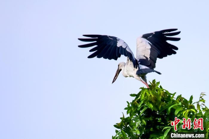 樹頂上的鉗嘴鸛?!≈軐W(xué)峰 攝