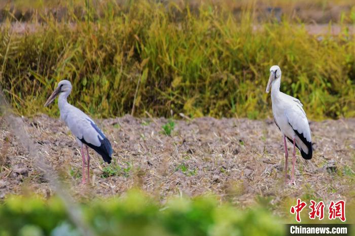 稻田里的鉗嘴鸛。 周學(xué)峰 攝