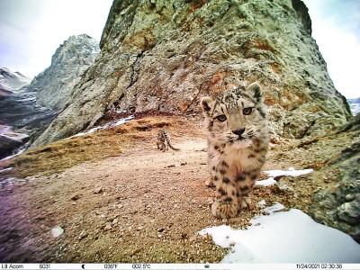 在世界屋脊研究野生動物,免不了直面挑戰(zhàn)。雪豹喜歡陡峭的石壁和山崖,因此安放紅外相機必須克服恐高心理。2021年10月,在云塔村爬山布設(shè)紅外相機時,我為了緊跟隊伍,沒來得及觀察周圍環(huán)境。當(dāng)穿過灌木到達(dá)監(jiān)測位點時,才發(fā)現(xiàn)自己站在山脊線上,背后就是幾十米高的斷崖,立馬嚇得眩暈蹲下。檢查并重新安裝好紅外相機后,我們又爬完兩座山才完成了一天的工作。這一趟,我們創(chuàng)造了為追逐雪豹一天內(nèi)翻越3座山的紀(jì)錄。