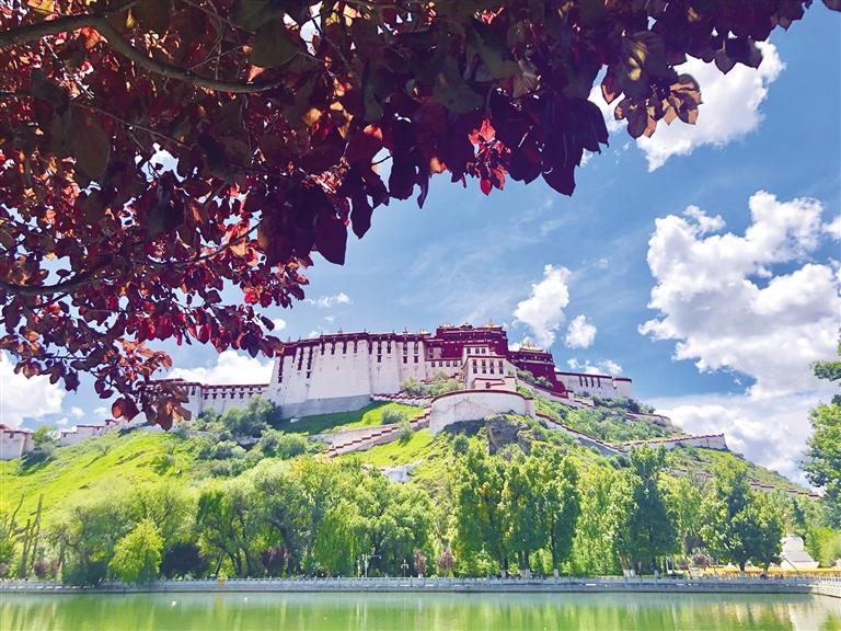 拉薩的夏天有獨(dú)特的風(fēng)格和別致的風(fēng)姿。天空藍(lán)得自帶“美顏”、白云仿佛“觸手可及”、日光耀眼奪目,還有那與夏天不匹配的溫度。拉薩的“熱”很獨(dú)特,站在陽(yáng)光下有夏天的味道,出汗的時(shí)候去往樹蔭乘涼,又有一絲秋天的涼意。