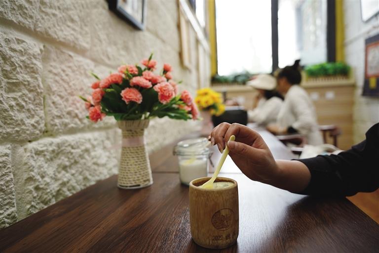 很多年輕人會(huì)說(shuō),冰激凌與夏天絕配,殊不知,酸奶也是西藏夏天的絕配。在八廓街的巴扎酸奶坊,來(lái)一杯香氣濃郁、酸甜平衡的冰鎮(zhèn)竹筒酸奶,清涼提神,回味無(wú)窮。吃完酸奶,已是正午時(shí)分,沿著宇拓路來(lái)到布達(dá)拉宮廣場(chǎng),走近湖邊,水鳥正悠閑地追趕魚群,看著鳥兒靈巧自在的身影,坐在湖邊臺(tái)階上納涼的市民游客也不禁露出了會(huì)心的微笑。