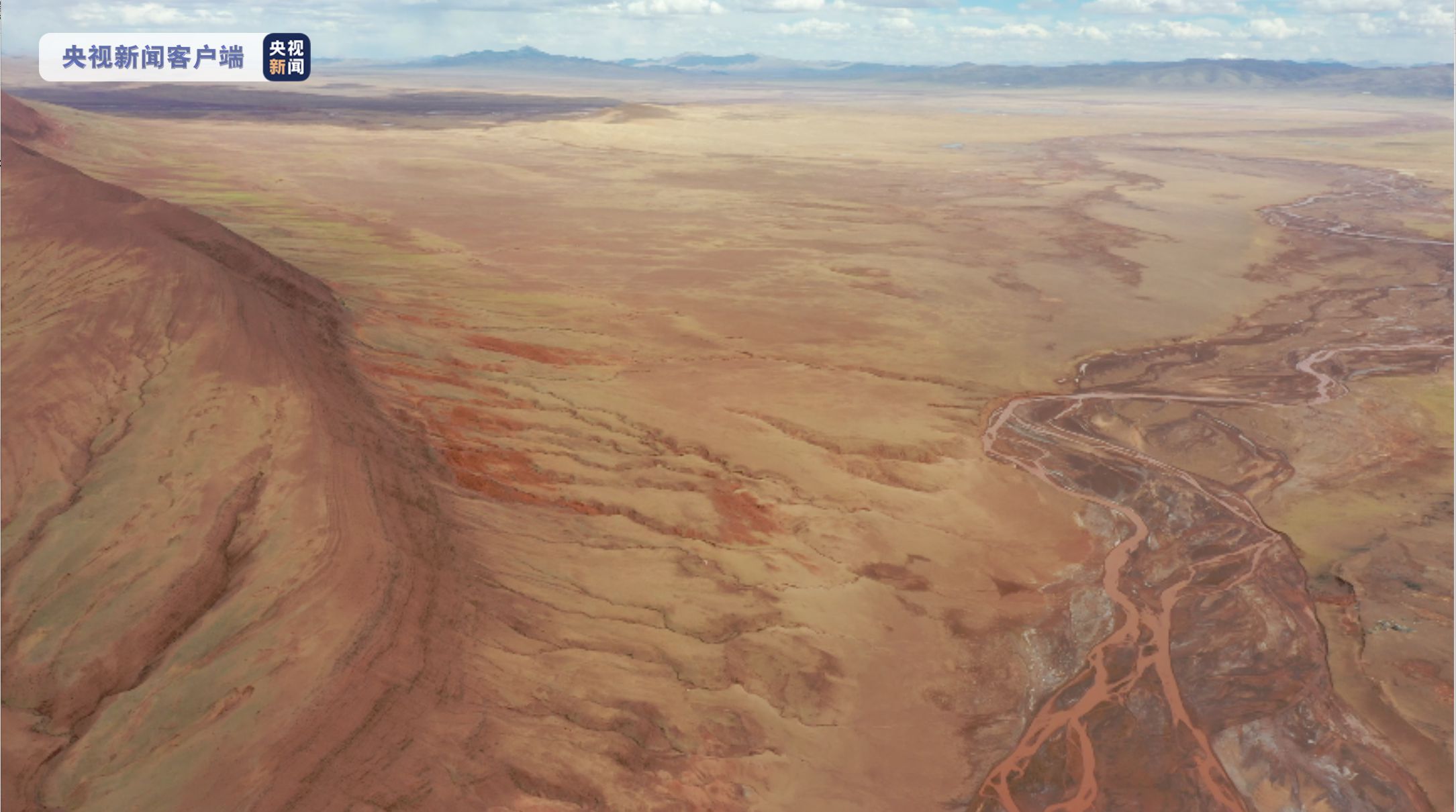 為探索長江源區(qū)的地質(zhì)奧秘,中國地質(zhì)大學(武漢)長江源科考先遣隊對長江源區(qū)進行綜合科學考察時,在長江源區(qū)冬布里山日阿尺曲一帶發(fā)現(xiàn)一條紅色山脈,該山脈由晚白堊紀鈣質(zhì)膠結(jié)的粉、細砂巖與古近紀紫紅色、磚紅色復成分礫巖所組成。