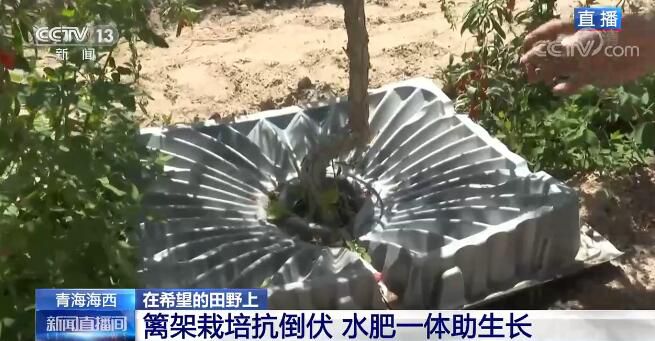 在栽培種植方面,由于枸杞樹苗比較脆弱,為了保證存活率,需要在溫室里培育一定時(shí)間才能適應(yīng)這里的氣候,之后才會(huì)移植到室外,進(jìn)行籬架栽培。而這樣的種植方式主要是為了抗倒伏,這里風(fēng)沙天氣較為頻繁,如果沒(méi)有籬架的支持保護(hù),枸杞樹很容易會(huì)栽倒,結(jié)下的果子與地表接觸一段時(shí)間后基本就會(huì)糜爛,產(chǎn)量就無(wú)法保證。大家可以再看一下枸杞樹的底部,有一個(gè)黑色的水管,工人會(huì)在水里加入水溶肥,既能澆水又能施肥,達(dá)到水肥一體。底下灰色的托板有兩個(gè)好處,一個(gè)是精準(zhǔn)灌溉,因?yàn)樵诟吆0蔚貐^(qū)氣候比較干燥、降水比較少,板上的凹槽能夠?qū)⒂晁吐端紖R聚到枸杞樹;第二個(gè)是可以遮擋陽(yáng)光,能夠抑制雜草的生長(zhǎng)。