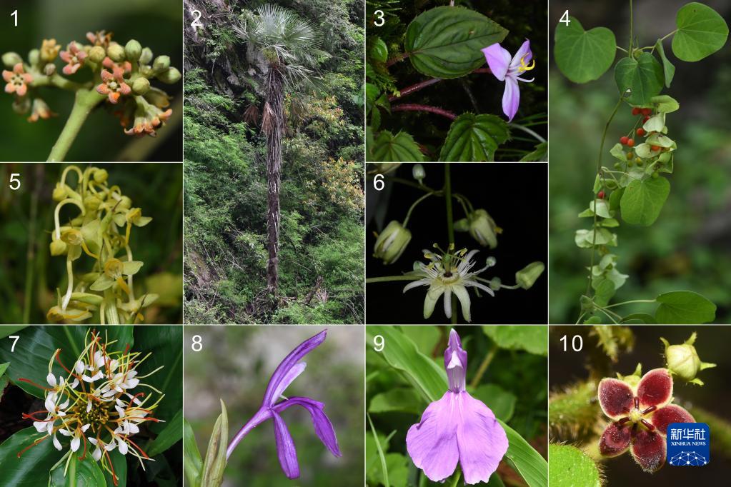 圖為:1、吉隆牛奶菜;2、塔基棕櫚;3、喀西蜂斗草;4、旋花錫生藤;5、吉隆角盤(pán)蘭;6、尼泊爾西番蓮;7、橢穗姜花;8、藏南象牙參;9、象牙參;10、箭藥藤(中國(guó)科學(xué)院西雙版納熱帶植物園供圖)