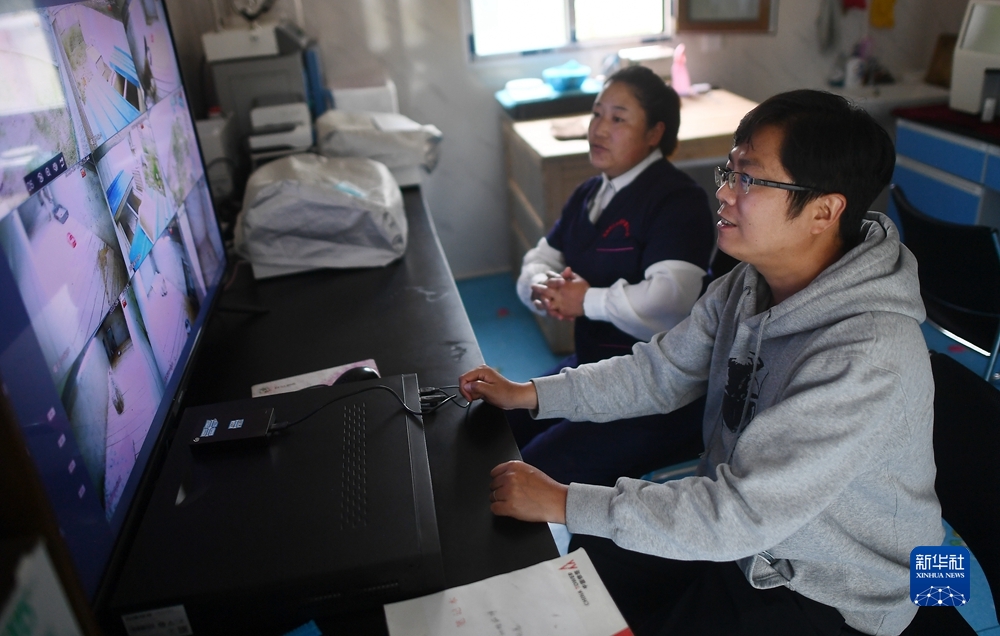 9月18日,在青海野生動物救護(hù)繁育中心,工作人員查看監(jiān)控,了解荒漠貓的進(jìn)食情況。新華社記者 張宏祥 攝