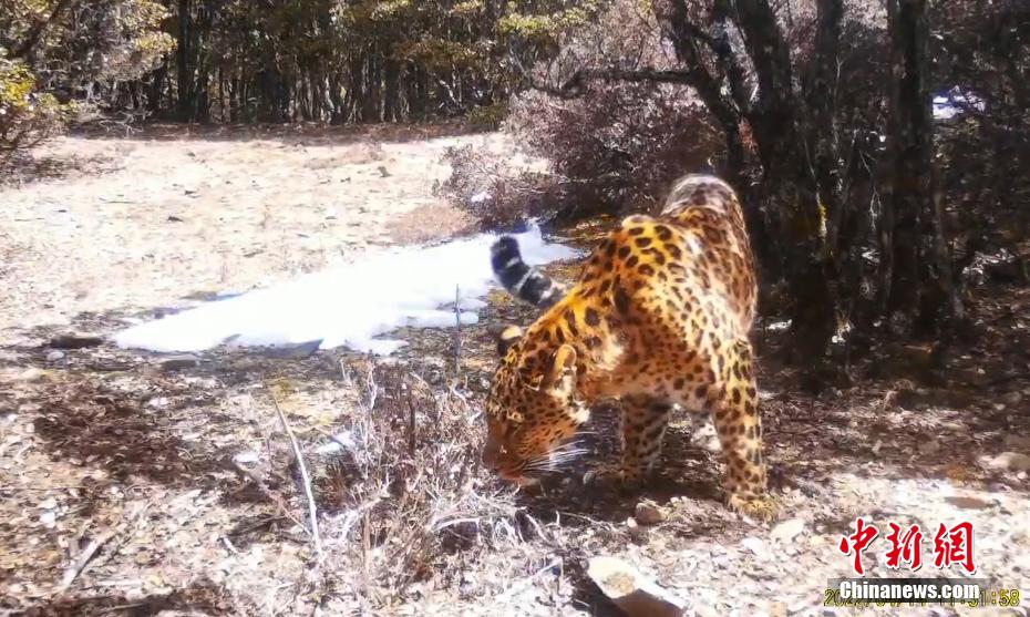 近日,木里縣博窩鄉(xiāng)野保監(jiān)測團(tuán)隊(duì),發(fā)布了一批木里縣部分野生動(dòng)物的照片和視頻。該團(tuán)隊(duì)自2017年成立以來,堅(jiān)持在博窩鄉(xiāng)開展紅外線相機(jī)監(jiān)測工作,現(xiàn)有23名成員,在野外安裝有185臺紅外相機(jī)。圖為金錢豹。 木里縣博窩鄉(xiāng)野保監(jiān)測團(tuán)隊(duì) 供圖