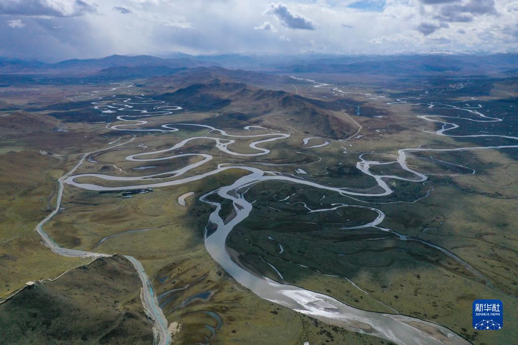 這是10月19日在四川省阿壩藏族羌族自治州若爾蓋縣拍攝的熱曲河(無(wú)人機(jī)照片)。新華社記者 王曦 攝