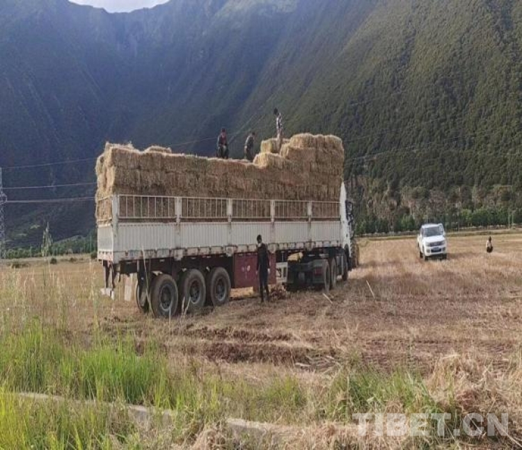 圖為國家牧草產(chǎn)業(yè)技術(shù)體系拉薩綜合試驗站工布江達(dá)縣示范點秋收搶收(海拔3990米)