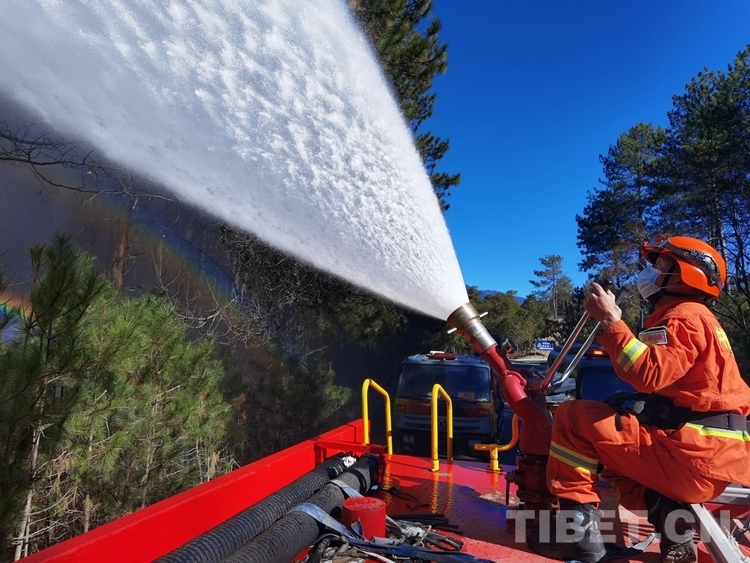 中國(guó)西藏網(wǎng)訊 當(dāng)前,正值西藏森林草原防火期,為降低森林火災(zāi)安全隱患,11月22日,西藏林芝市米林縣森林消防中隊(duì)聯(lián)合縣林草局開展森林防火增濕作業(yè)。(中國(guó)西藏網(wǎng) 通訊員/哈炎云 記者/賈華加)