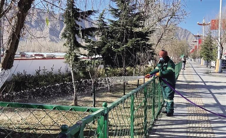 潔達(dá)園林公司副總經(jīng)理次仁平措介紹:“近日,我們的工作人員已開(kāi)始對(duì)城區(qū)綠化植被、行道樹(shù)和公園苗木進(jìn)行澆灌。此次冬季灌溉工作,主要采取人工噴灑及車(chē)輛澆灌相結(jié)合的方式,將解決大型噴灑設(shè)備無(wú)法全面澆灌的問(wèn)題?!?/p>