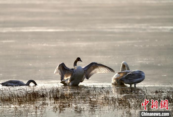 天鵝等多種野生鳥(niǎo)類(lèi)“抵達(dá)”青海格爾木濕地越冬
