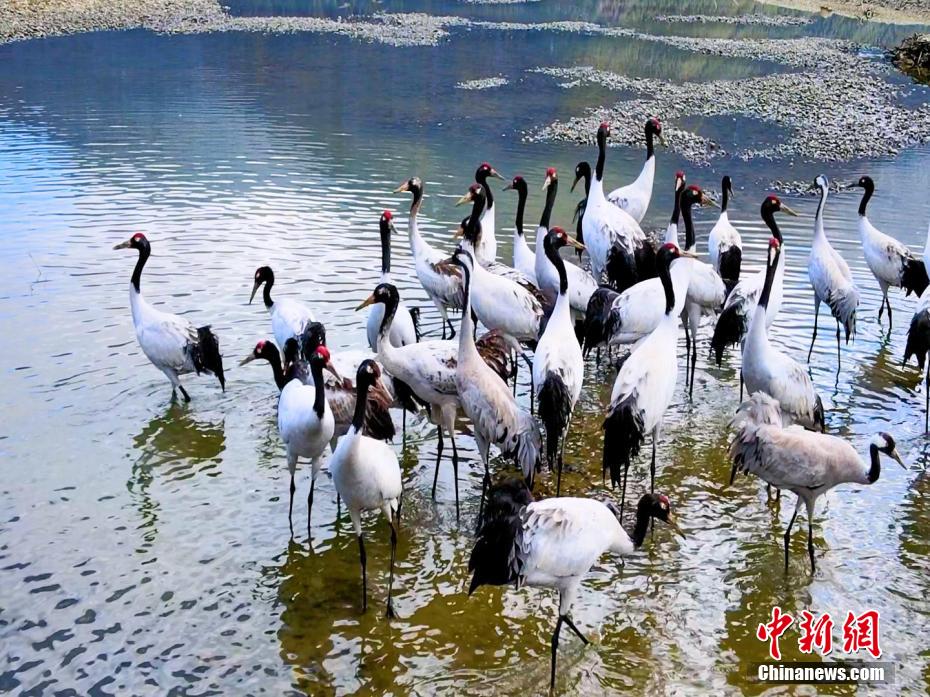 西藏米林迎來(lái)高原“貴客”——黑頸鶴