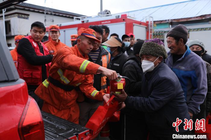 該中隊為每家每戶配發(fā)干粉滅火器?!∥骼@拉翁 攝