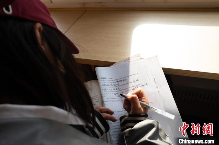 當(dāng)?shù)貙W(xué)生在“慢火車(chē)”上的學(xué)習(xí)車(chē)廂寫(xiě)作業(yè)?!「惰?攝