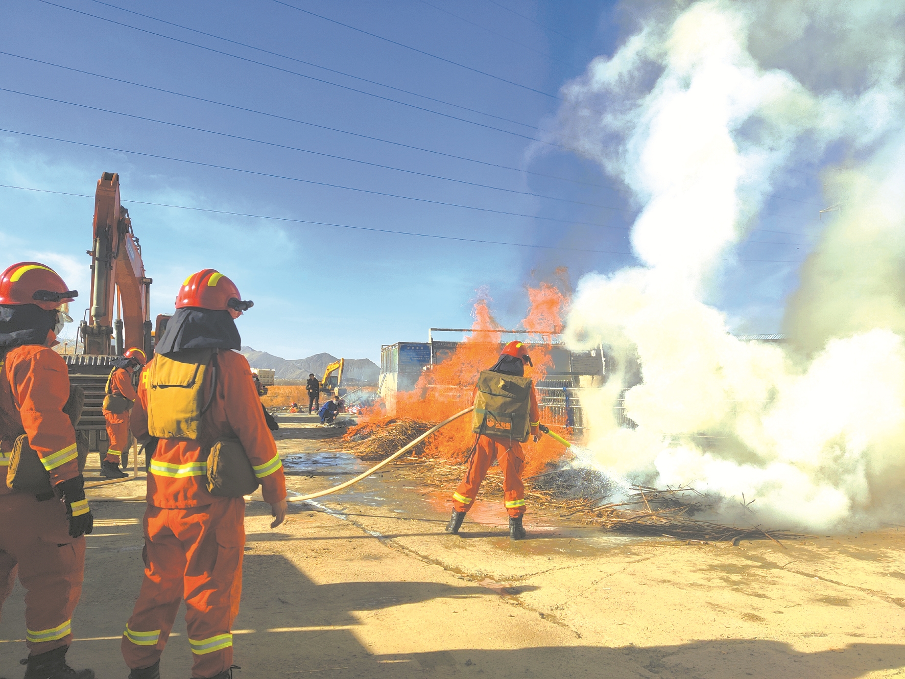 圖為消防演練現(xiàn)場(chǎng)。拉薩融媒記者 余洋洋攝