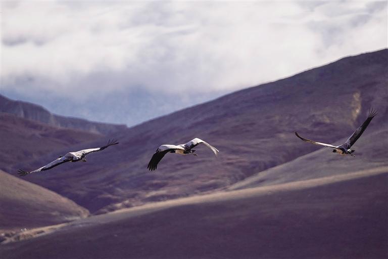 在西藏,黑頸鶴從越冬地到繁殖地有兩條線路:一條是拉薩到色林措,另一條則是從日喀則到色林措。整體來(lái)說(shuō),是從雅魯藏布江中游河谷黑頸鶴國(guó)家級(jí)自然保護(hù)區(qū)飛往色林措黑頸鶴保護(hù)區(qū),兩個(gè)保護(hù)區(qū)之間有一條固定的黑頸鶴遷徙路線,每年黑頸鶴會(huì)在3月中旬從越冬地雅江中游河谷及其支流拉薩河、年楚河流域的“一江兩河”地區(qū),飛去羌塘北部草原繁育后代;又會(huì)于11月中旬從繁殖地那曲的班戈縣、申扎縣、嘉黎縣,阿里的日土縣、普蘭縣,日喀則的昂仁縣,拉薩的當(dāng)雄縣返回到越冬地。對(duì)于雅江中游河谷來(lái)說(shuō),它是冬候鳥;對(duì)于羌塘北部草原來(lái)說(shuō),它是夏候鳥。