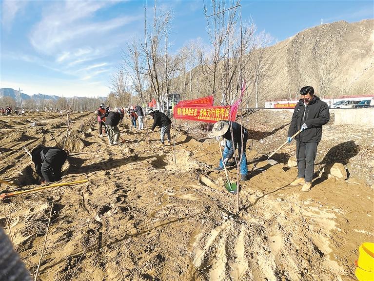 4月7日,西藏自治區(qū)生態(tài)環(huán)境廳開展“攜手共植愛心樹 我為拉薩添新綠”聯(lián)合主題黨日活動(dòng),組織黨員干部職工義務(wù)植樹,為高原添綠增色。趙礦 周文良 攝