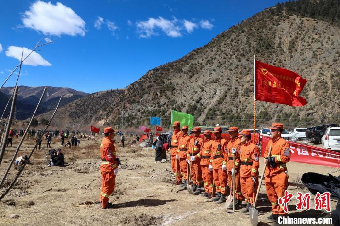 西藏左貢森林消防參加義務(wù)植樹?!埡椤z