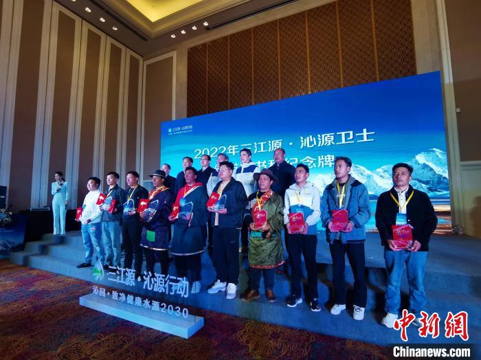 活動現(xiàn)場,主辦方為阿夏江才、吾才等十位2022年“三江源·沁源衛(wèi)士”頒發(fā)了證書和紀念牌。