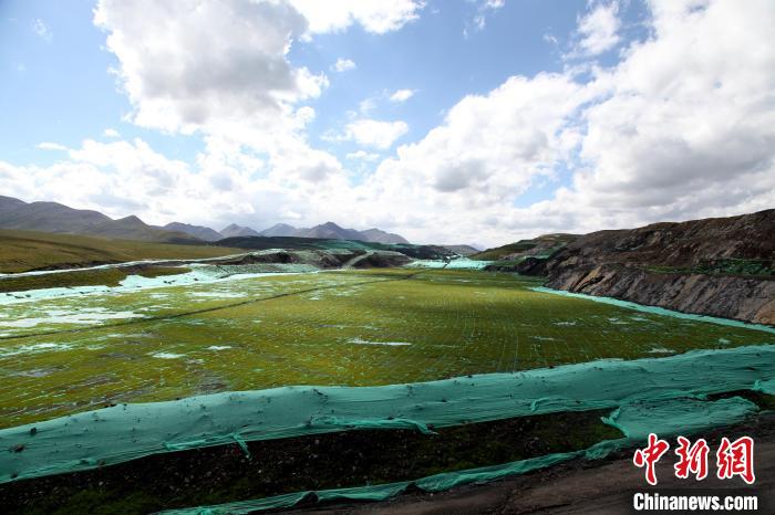 今年3月,久買正在查看種草復(fù)綠區(qū)域的網(wǎng)圍欄。 中新社記者 李雋 攝